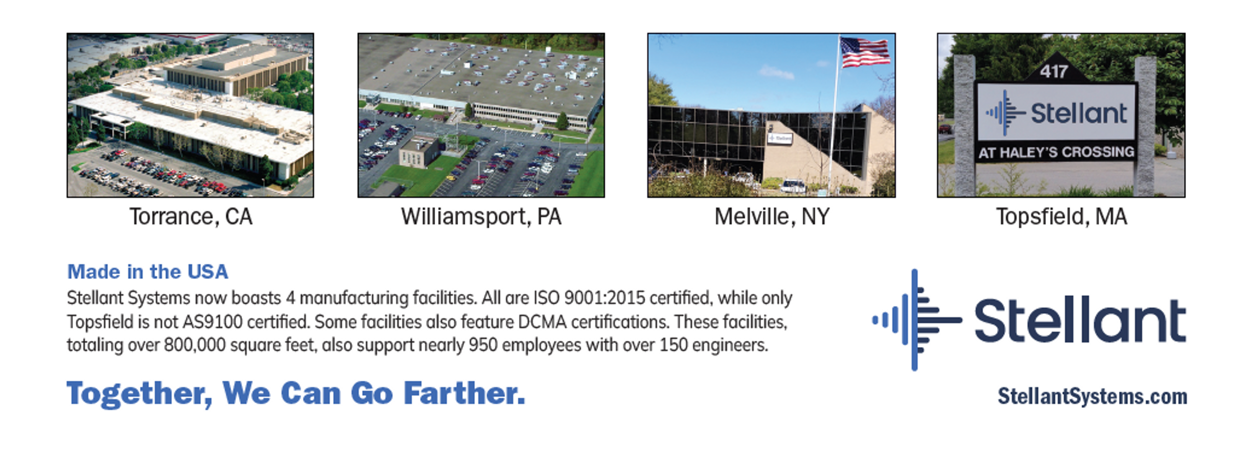 Stellant manufactures its space‑qualified products in Torrance, CA with additional non‑space production in Torrance, Williamsport, PA and Melville, NY. Key processes handled entirely in-house include: